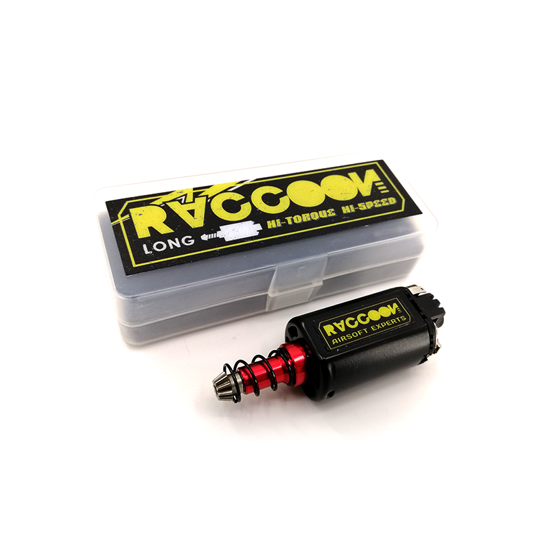El motor HI PERFORMANCE de RACCOON ofrece una relación torque-speed de las más interesantes del mercado gracias a una insuperable relación calidad precio. No necesitas gastar mas en motores de alta gama, con este motor puedes mover muelles para DMR con rapidez, ofreciendo una cadencia de disparo optima tanto para Asalto desde  muelles 90/100 como para DMR con muelles hasta 130/140 con un tope de revoluciones por encima de 35.000rpm con baterías de 11.1V.