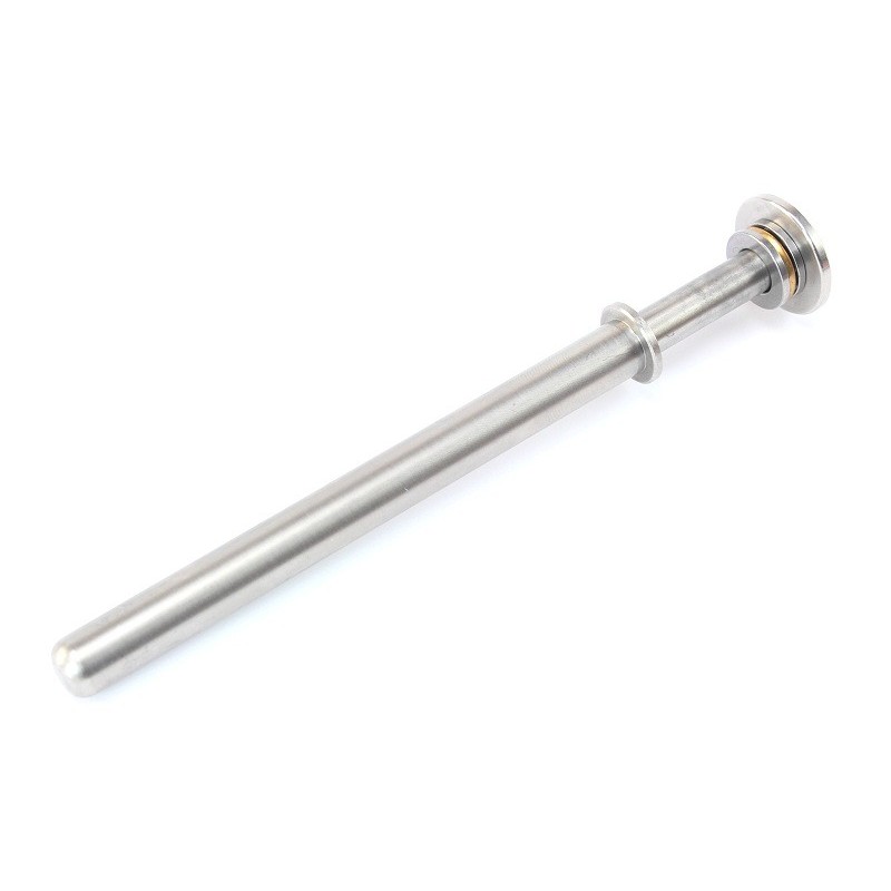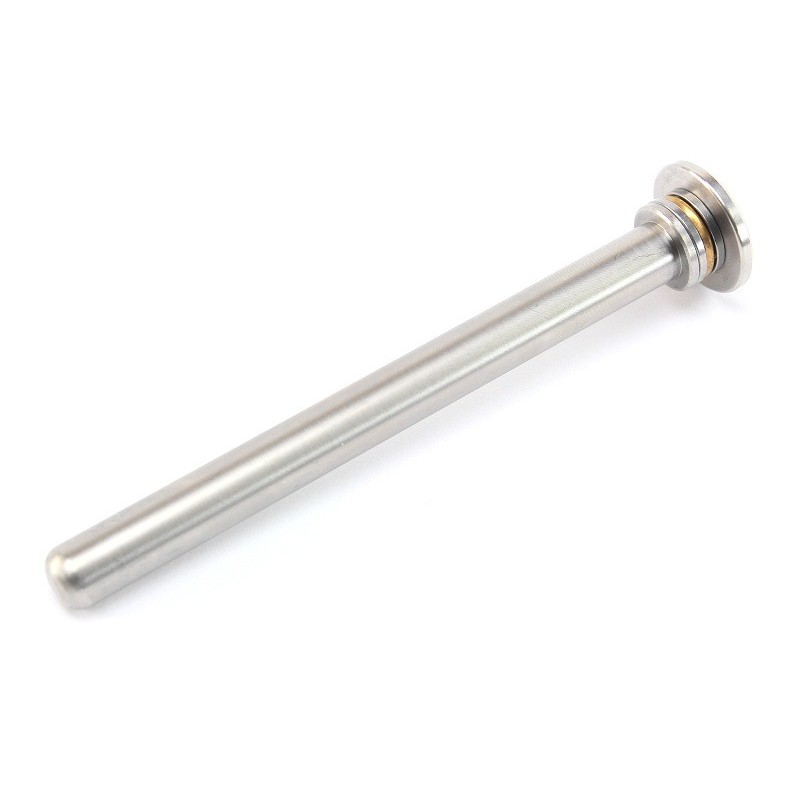 Un nuevo modelo de guía de muelle de acero que permite el uso de muelles clásicos de 7mm y muelles más fuertes de 9mm. La guía de acero interior con el cojinete tiene un diámetro exterior de 7mm. Una vez colocado el manguito, se puede utilizar un muelle mejorado de 9mm (significa diámetro interior del muelle).