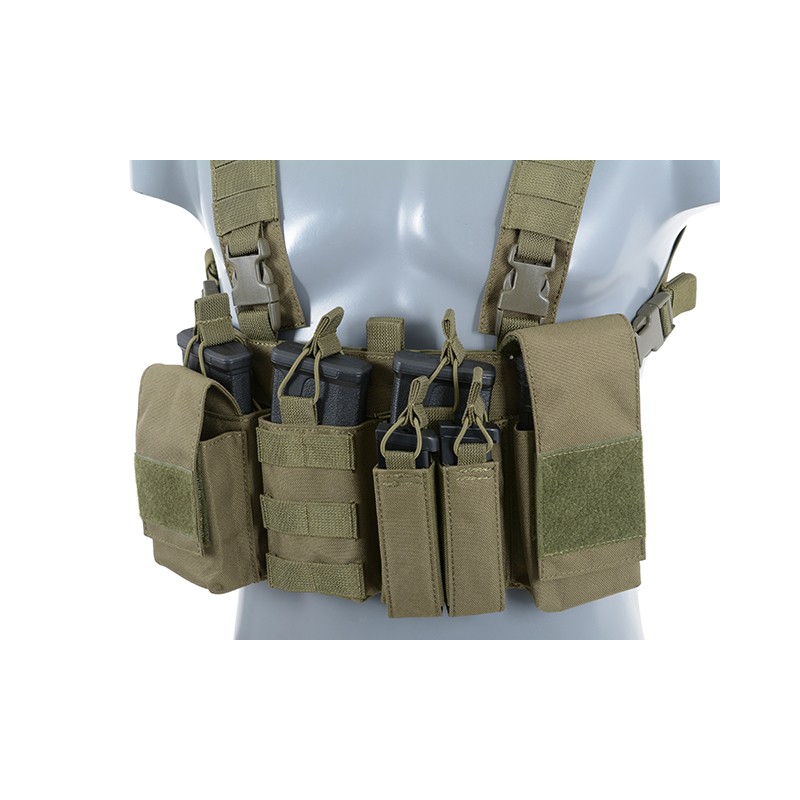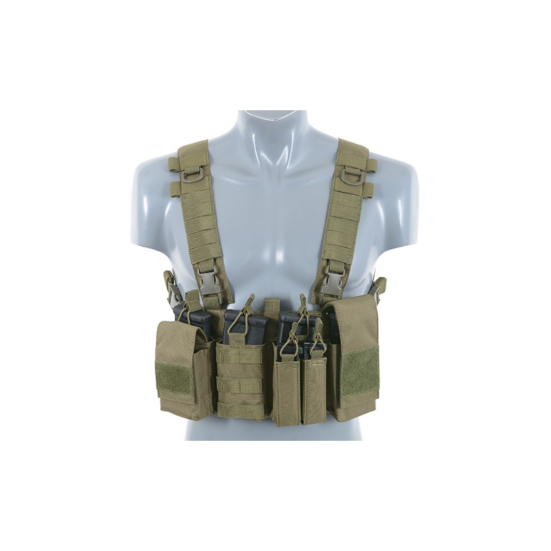 This multi-mission Chest Rig is capable of carrying M4 and AK magazines, pistol magazines, radio, flashlight, multi-tools, 40mm grenades or many other accessories.