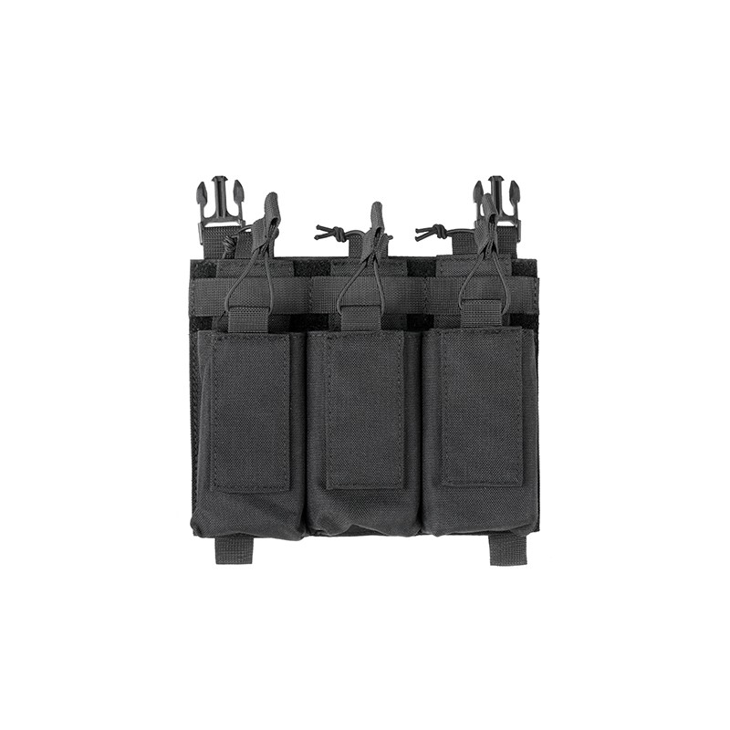 La versión con solapa de velcro superior montada protege los cargadores contra el agua o el polvo. Sin embargo, después de quitar la solapa y montar el cordón elástico que protege los cargadores para que no se caigan, los cargadores se pueden quitar más rápido de la bolsa en situaciones dinámicas.