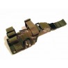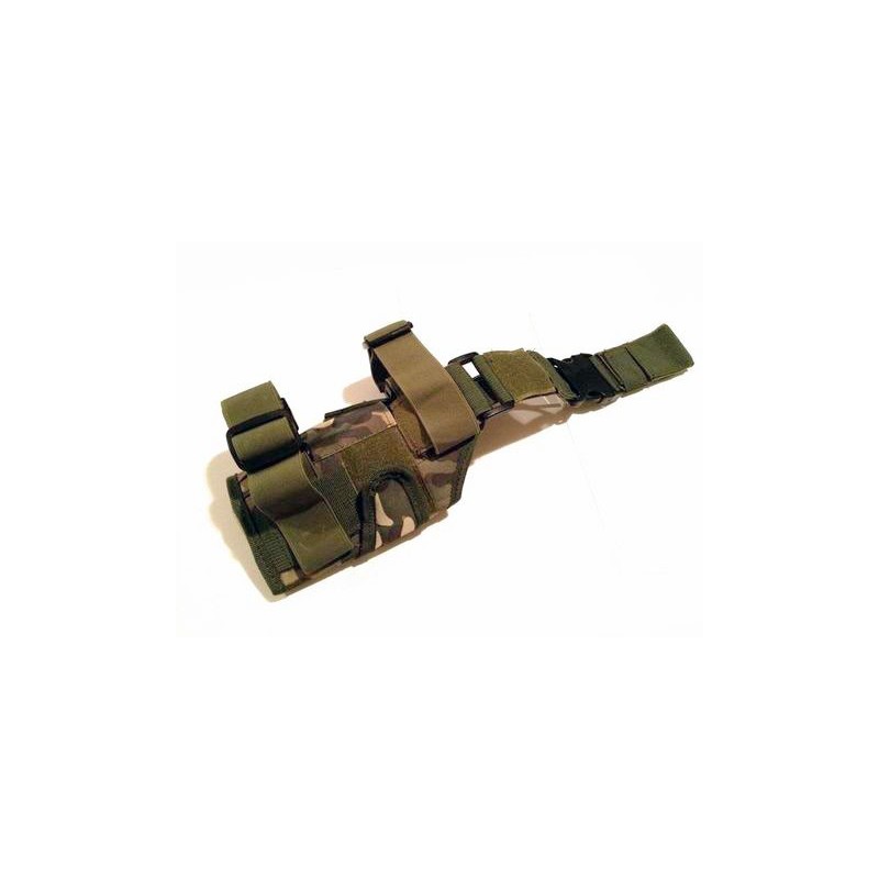 The thigh holster can be attached to the hip belt with a Velcro closure and buckle. It is compatible with most medium to large size pistols such as, Glock17, Glock19, 1911, Desert Eagle, etc.