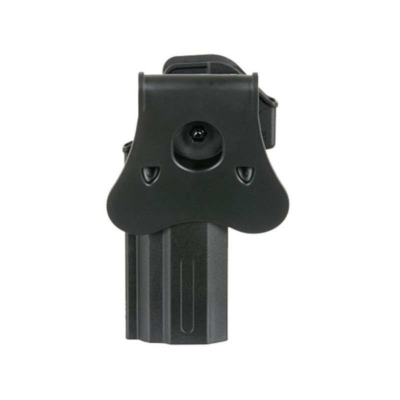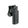 El cuerpo de la funda y la plataforma de transporte están conectados con un engranaje de dientes y un tornillo. El cuerpo de la funda tiene una rotación de 360 grados. Los jugadores de airsoft pueden ajustar fácilmente la posición de transporte.