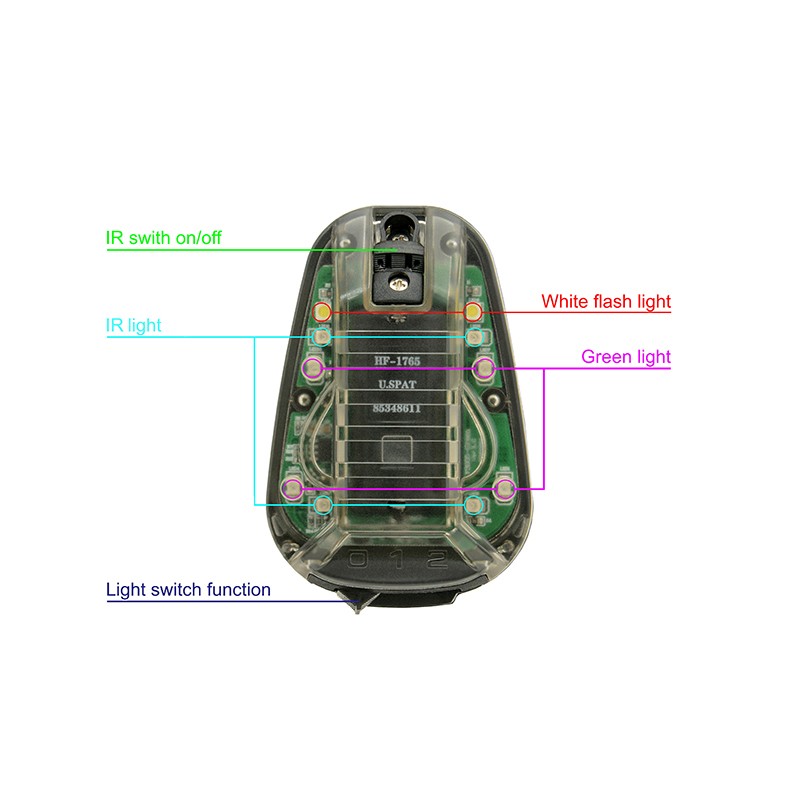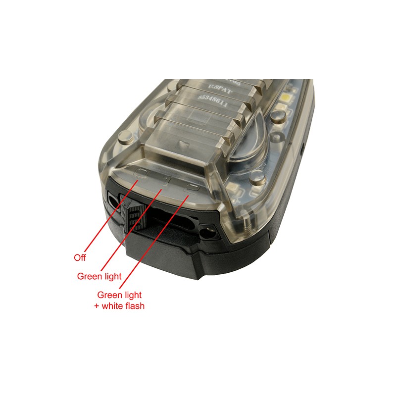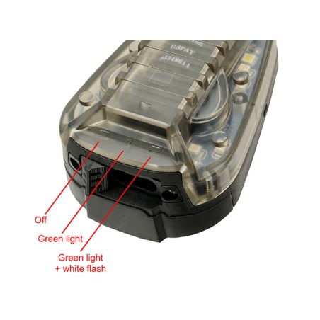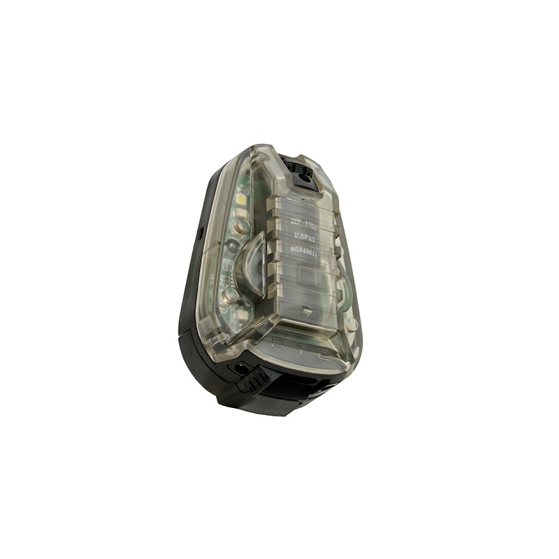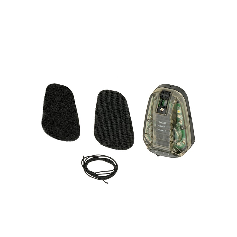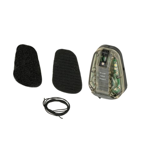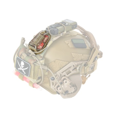 Marcador estroboscópico HEL-STAR 6 GEN III para el casco. Utilizando el velcro con pegamento autoadhesivo, también podemos fijarlo al uniforme, a la mochila y al chaleco táctico. La luz tiene dos modos de funcionamiento (A y B) y cuatro funciones (A1, A2, B1, B2). Modo A1 - enciende los LEDs en modo constante, A2 - LEDs en modo constante más un LED blanco intermitente, B1 - infrarrojo intermitente y B2 - infrarrojo constante. Los interruptores permiten cambiar de modo y encender/apagar de forma suave y cómoda. El marcador ayuda a identificar, localizar y marcar la propia posición durante las operaciones tácticas. Ha sido desarrollado para operaciones aerotransportadas, saltos en paracaídas y operaciones en tierra para los servicios militares y uniformados. Dispone de orificios que permiten colocar líneas adicionales para asegurar y proteger contra el desgarro de un casco o una escafandra. El marcador, perfectamente diseñado, es resistente a los golpes, al agua y al polvo. Funciona con una pila CR123 (no incluida)