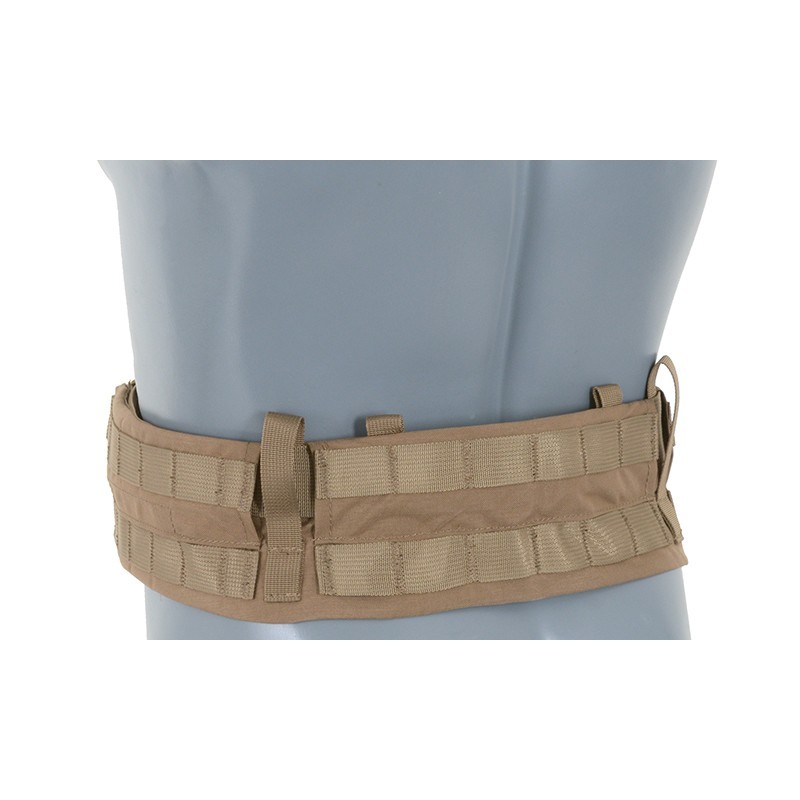 Modular tactical belt designed to attach pants and carry holsters, pouches and other equipment in the MOLLE system.