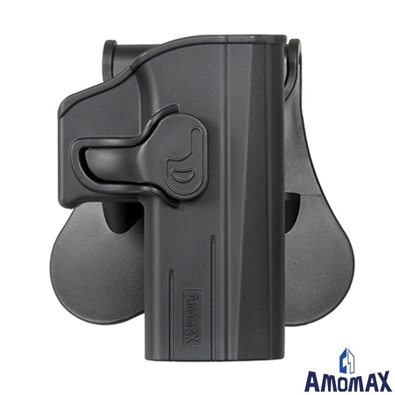 La funda Amomax es compatible con 4 plataformas de transporte diferentes: paleta (estándar), clip de cinturón, MOLLE y plataforma de pierna caída.