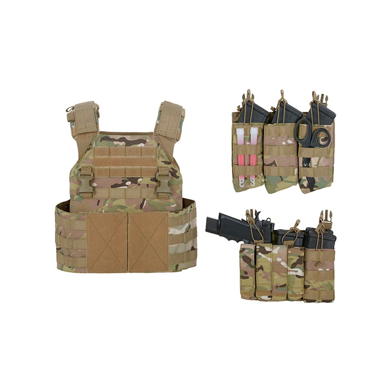 El sistema Buckle Up de clip rápido permite hacer distintas configuraciones de portacargadores, pouch de todo tipo para cambio rápidos de equipo, ahorrando tiempo en cambiar de configuración.