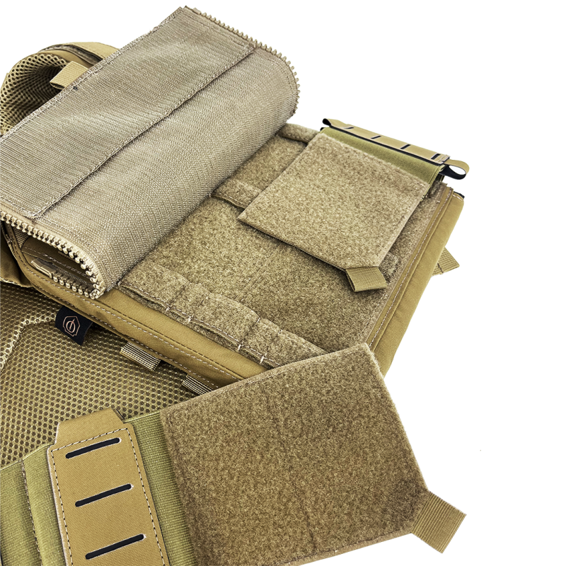Por ultimo en la zona de la placa trasera se han añadido cremalleras a ambos lados con la intencion de poder colocar un backpanel (o mochila tactica) aumentando aun mas la capacidad de carga del chaleco para aquellos eventos Milsim que lo requieran o por simple punto de estetica que buscamos tantos jugadores de Airsoft