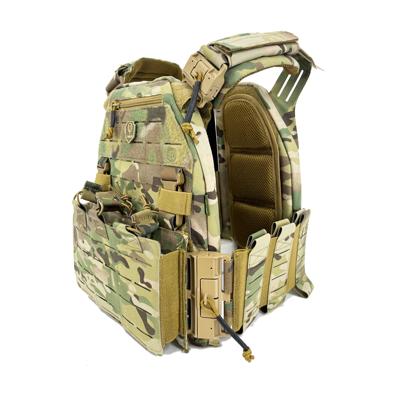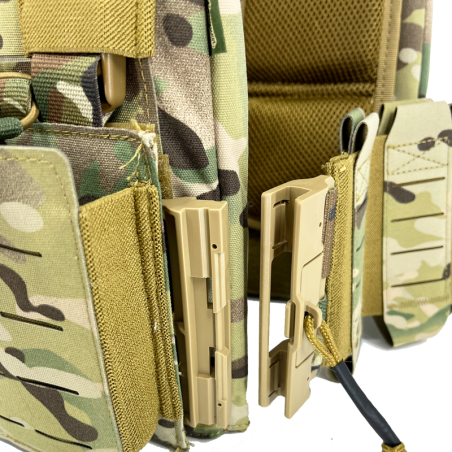 Además de poseer un camuflaje espectacular cuenta con un cummer elástico con velcros, con pouches construidos en la propia estructura del cummer y unos tiradores QD tanto en los laterales como en una de las cogidas del hombro, lo cual permitirá una apertura super rápida del chaleco elevando la comodidad del mismo (y la operatividad) a niveles que pocos chalecos de esta gama de precio tienen!