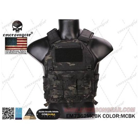 Un porta placas ligero, con un sistema de cummerbund elástico y cubierto con una tela de malla semi-ventilada que recuerda a los chalecos de corte “swimmer” que se utilizan en los entornos acuáticos. Con sistema de porta cargadores incluido en un panel delantero extraíble mediante sistema de velcro y clips, imitado en la parte trasera del mismo con un panel MOLLE donde se pueden colocar todo tipo de pouches o accesorios compatibles con el mismo.