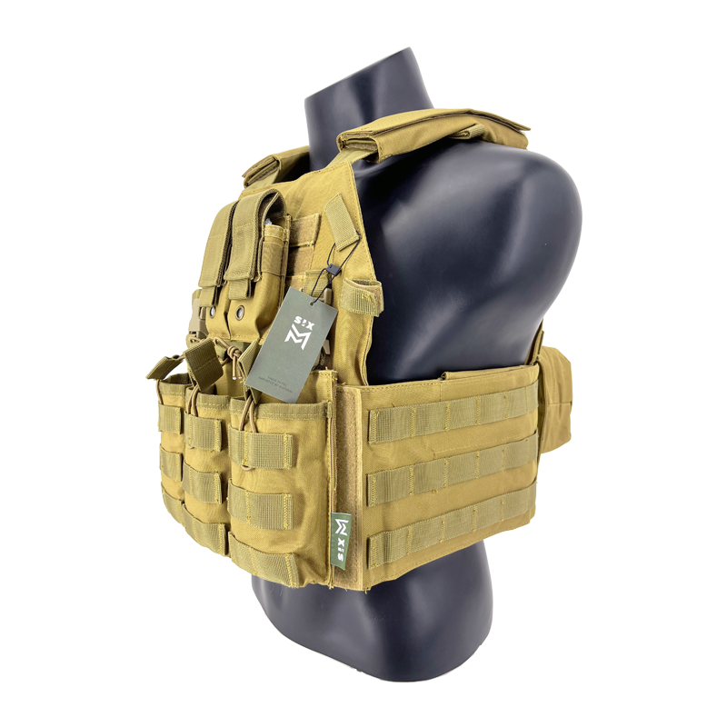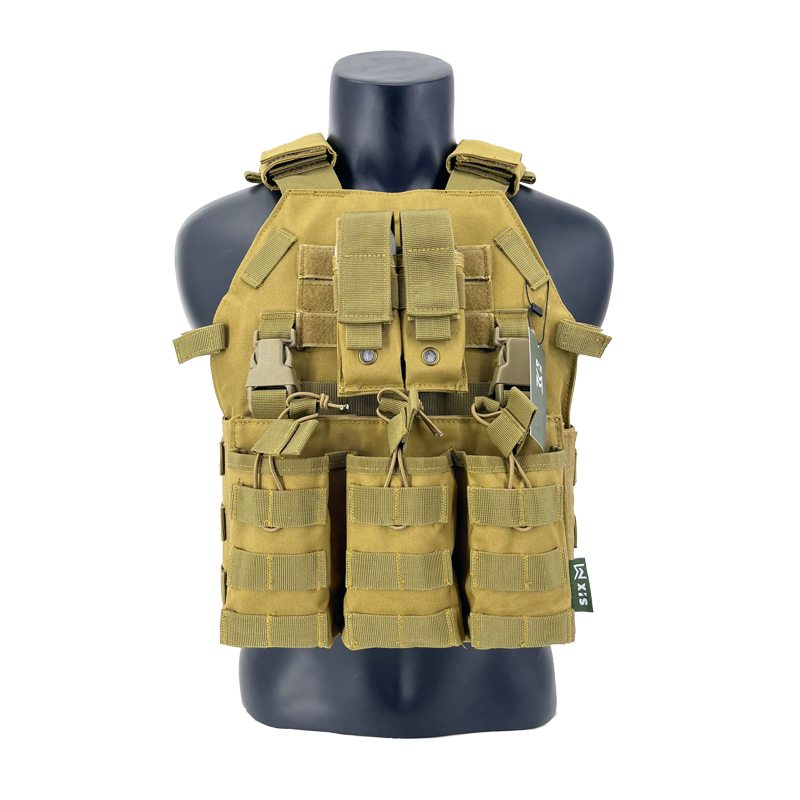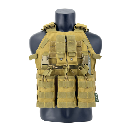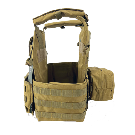 Chaleco portaplacas con pouch triple para cargadores de M4 OPENTOP (compatible con chestrig de SIXMM y diversas marcas). Un chaleco con una forma de placa que nos quiere recordar a un 6094 y que se hace muy cómodo de usar gracias a su estructura simple. Cuenta con un cummerbund lateral completo con sistema MOLLE donde podremos colocar todo tipo de accesorios. Además del triple pouch frontal encontraremos un portacargador doble de pistola y un porta accesorio.
