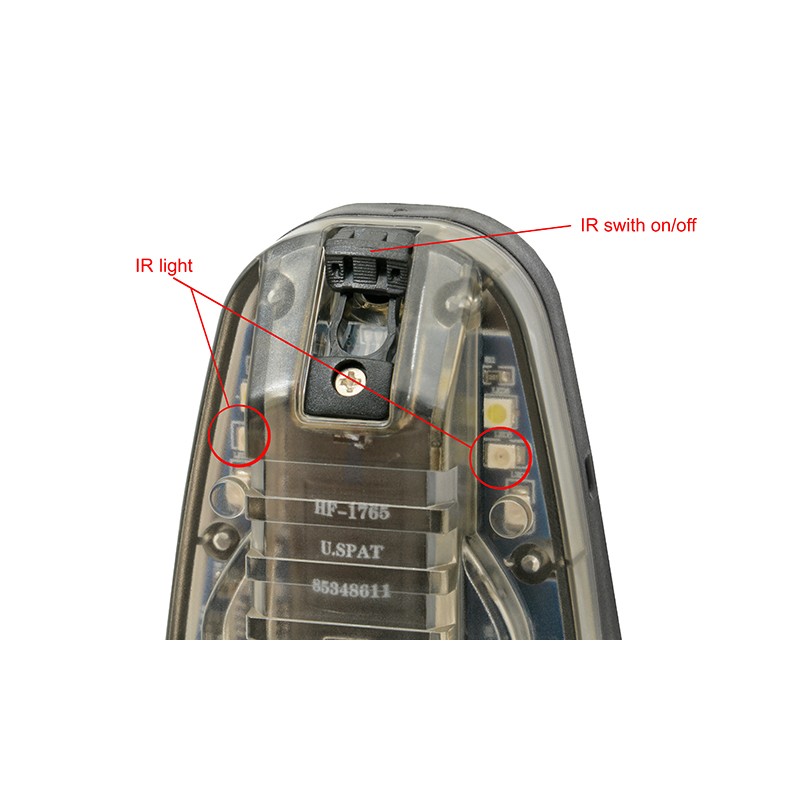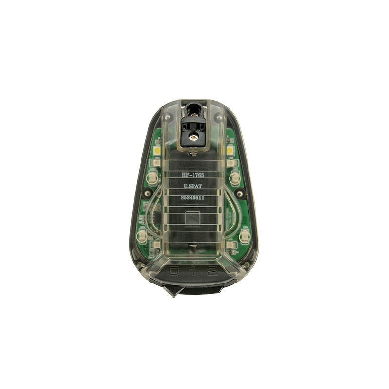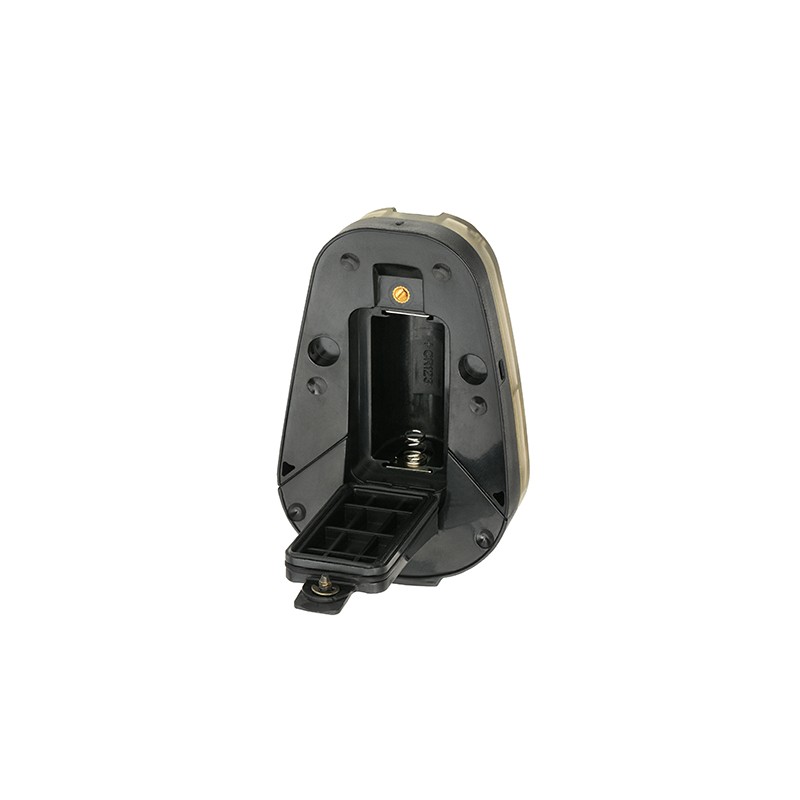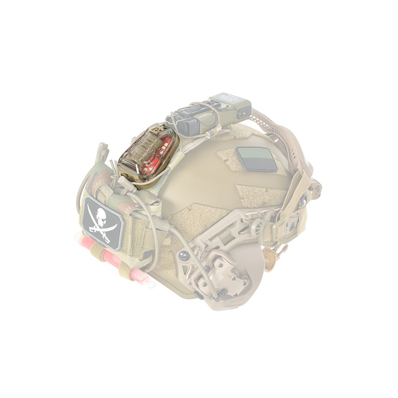 Marcador estroboscópico HEL-STAR 6 GEN III para el casco. Utilizando el velcro con pegamento autoadhesivo, también podemos fijarlo al uniforme, a la mochila y al chaleco táctico. La luz tiene dos modos de funcionamiento (A y B) y cuatro funciones (A1, A2, B1, B2). Modo A1 - enciende los LEDs en modo constante, A2 - LEDs en modo constante más un LED blanco intermitente, B1 - infrarrojo intermitente y B2 - infrarrojo constante. Los interruptores permiten cambiar de modo y encender/apagar de forma suave y cómoda. El marcador ayuda a identificar, localizar y marcar la propia posición durante las operaciones tácticas. Ha sido desarrollado para operaciones aerotransportadas, saltos en paracaídas y operaciones en tierra para los servicios militares y uniformados. Dispone de orificios que permiten colocar líneas adicionales para asegurar y proteger contra el desgarro de un casco o una escafandra. El marcador, perfectamente diseñado, es resistente a los golpes, al agua y al polvo. Funciona con una pila CR123 (no incluida)