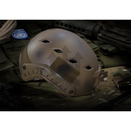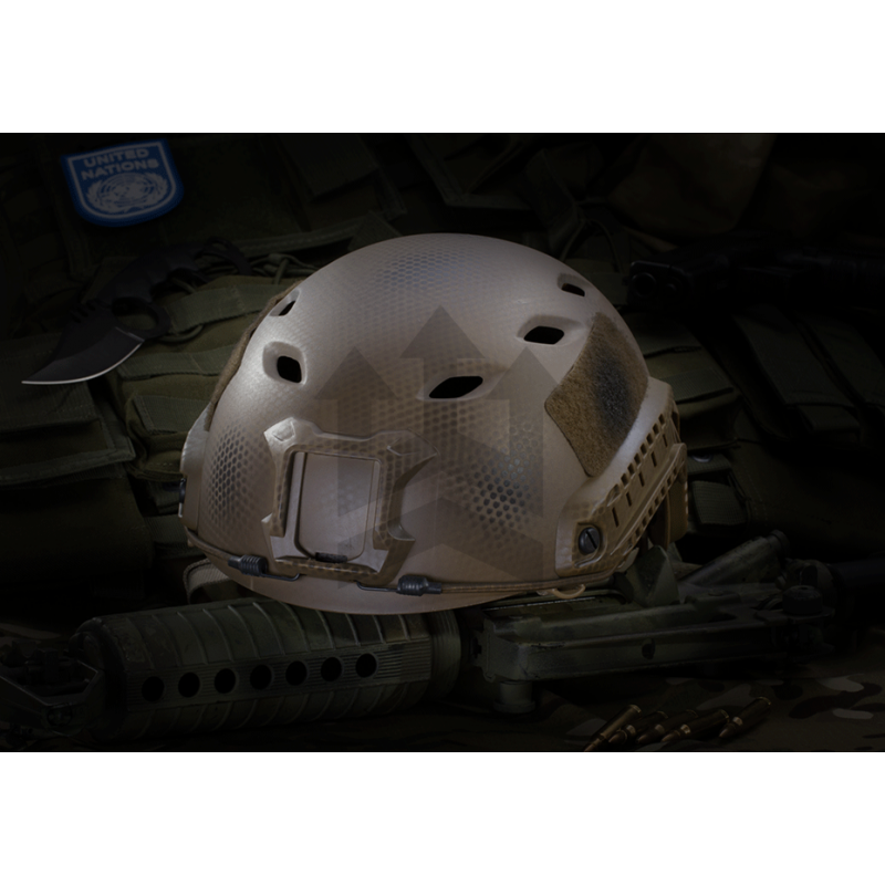 Casco tipo "BJ" fabricado por Emerson Gear, una de las mejores opciones para los airsofters que quieren disfrutar de comodidad, posibilidades de configuración y una magnifica relación calidad/precio. En las monturas laterales podemos insertar adaptadores "Picatinny" para usar todo tipo de accesorios como linternas, cámaras o láseres. Están preparados para montar auriculares así como otros accesorios. Podemos montar máscaras de protección, correas elásticas, visores nocturnos, etc.