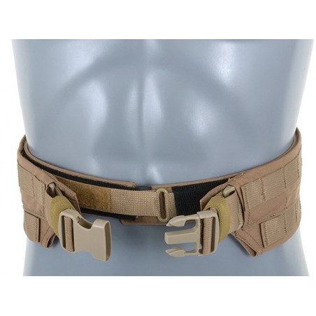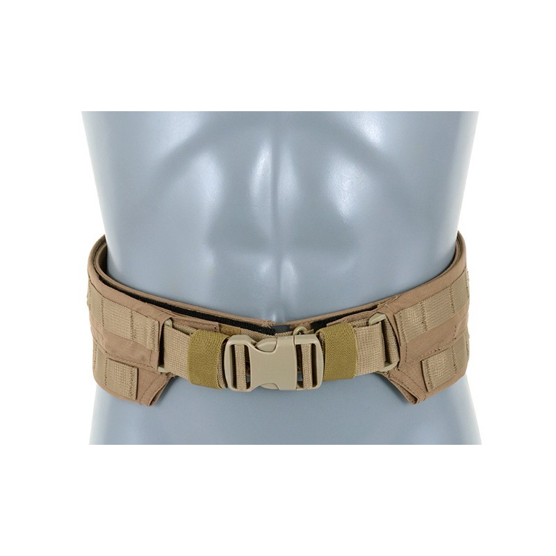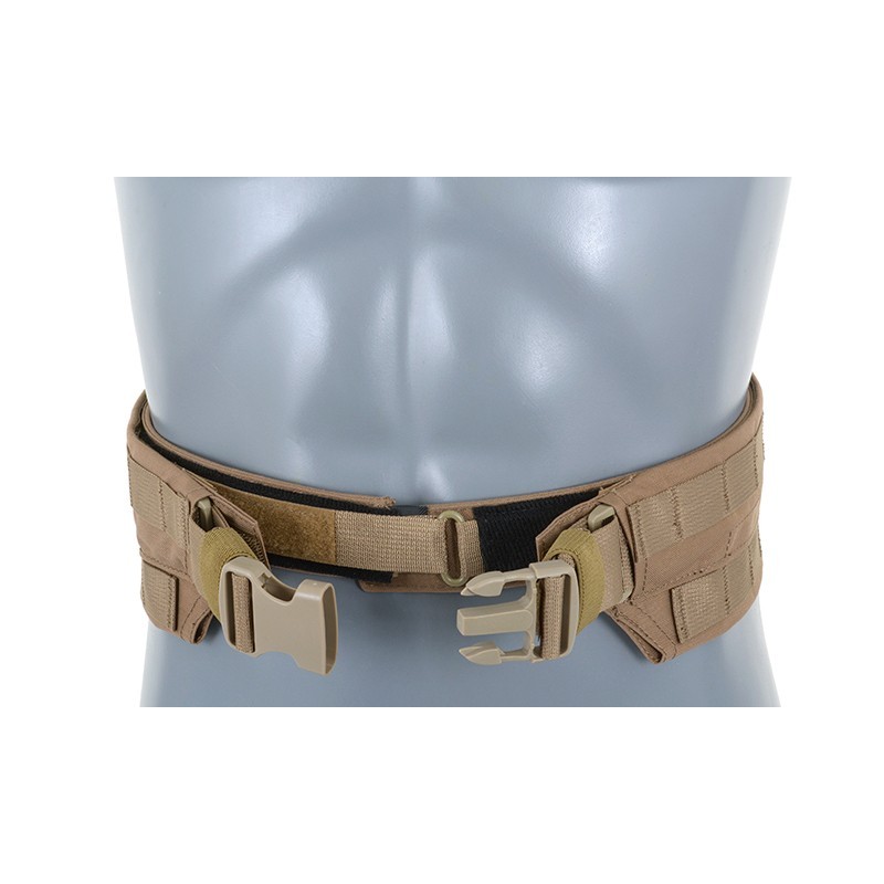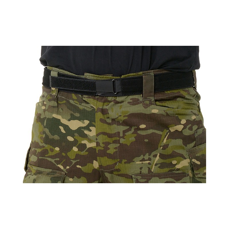 Incluye un cinturón interior y un cinturón exterior MOLLE. El cinturón interior pasa a través de las trabillas del pantalón y el cinturón exterior se sujeta al velcro. El cinturón exterior se puede desmontar en cualquier momento y colocarlo en la misma posición sin cambiar la posición del equipo. Este sistema de cinturón mantiene su equipo en la misma posición cada vez.