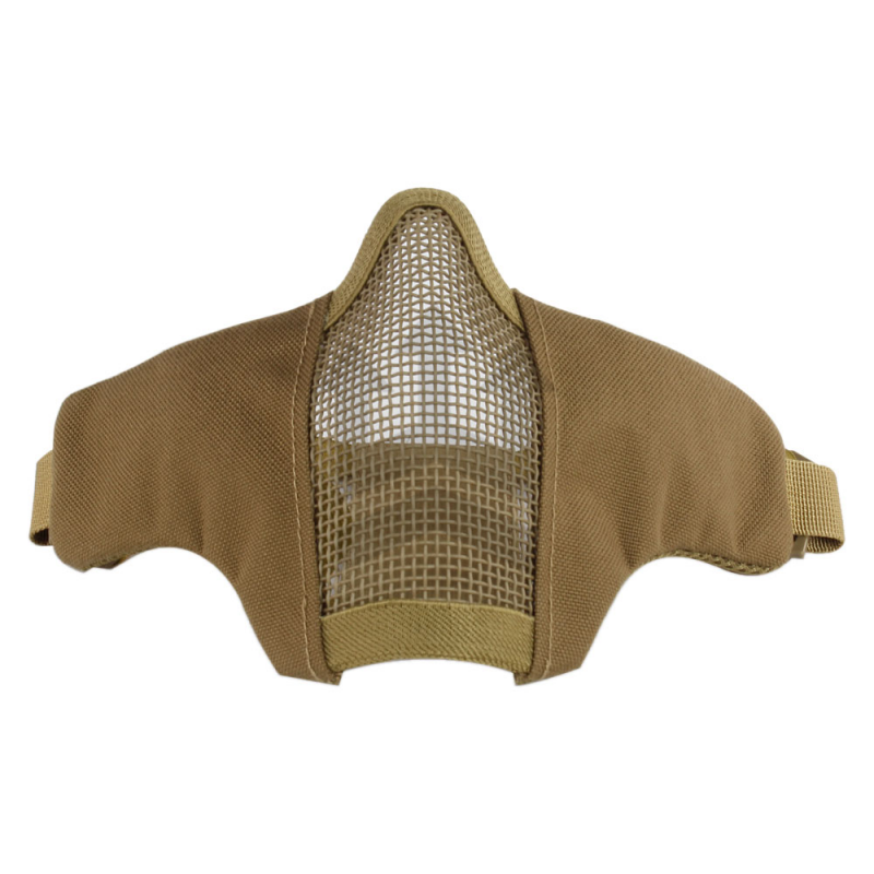 Máscara protectora de rejilla metálica con laterales de nailon acolchados. Proporciona protección desde la nariz a la barbilla, los laterales acolchados blandos protegen las mejillas sin añadir puntos de presión además de hacer mas cómodo el apuntado con nuestra replica y su diseño plegable facilita el transporte.