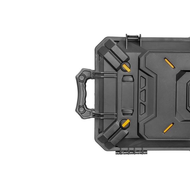 El polímero de alta calidad hace que la carcasa sea resistente a golpes, golpes o caídas. No tiene que preocuparse por inundarlo con agua gracias a la clase impermeable IPX-7. En el interior encontrará dos insertos con la posibilidad de cortar la forma de un mosquetón, para que pueda personalizar perfectamente el interior de la maleta.
