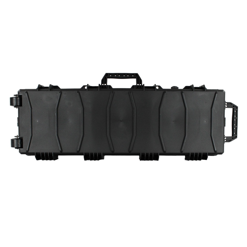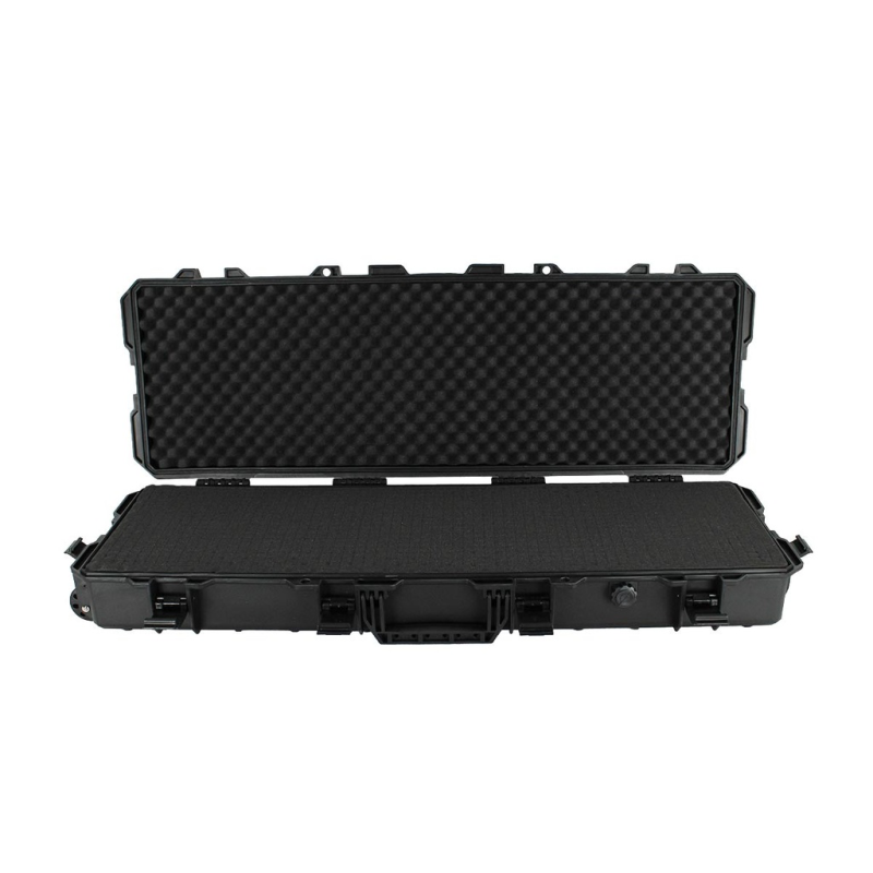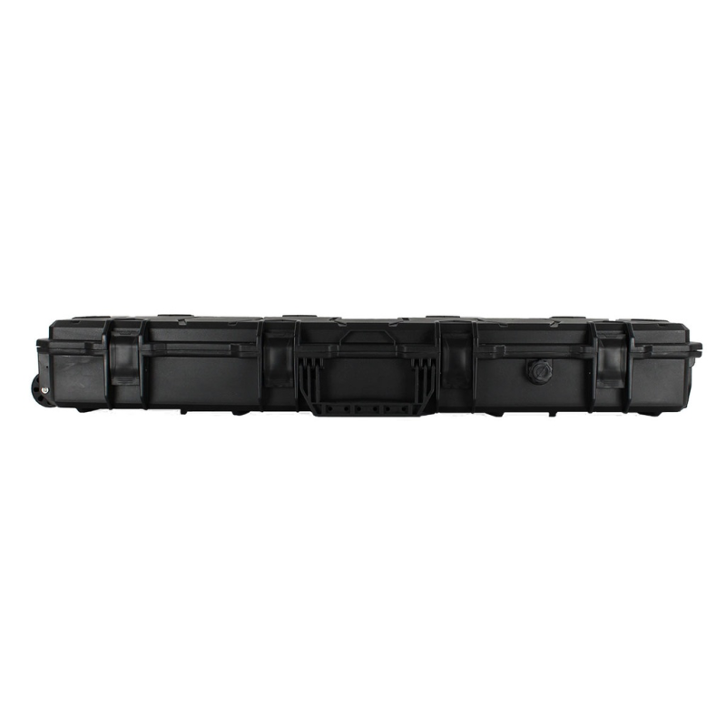 Los cierres son de clip a presión reforzado, más seguros y fiables que las cremalleras deslizantes, e incluyen orificios para candado que aumentan la protección en transporte o viajes. También ofrece ruedas y asas plegables, combinando ergonomía y funcionalidad en desplazamientos largos. Este estuche es perfecto tanto para entornos tácticos como para envíos por aire o almacenamiento exigente.
