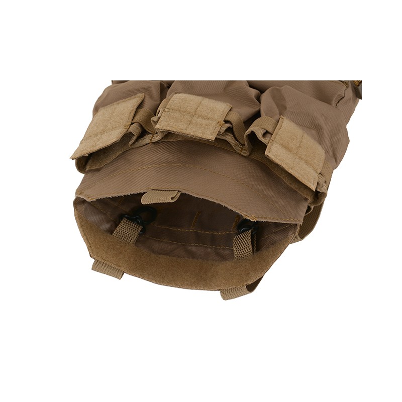 Dispone de un bolsillo de hidratación de hasta 2 L (bolsa de agua no incluida), una bolsa para GP y 4 bolsillos pequeños para flashbangs, granadas y cargadores de 5,56 o muchos otros accesorios. Compatible con la mayoría de chalecos tácticos MOLLE, chalecos antibalas y portaplacas.