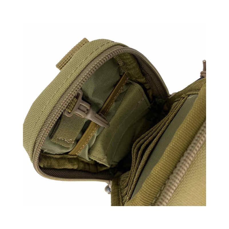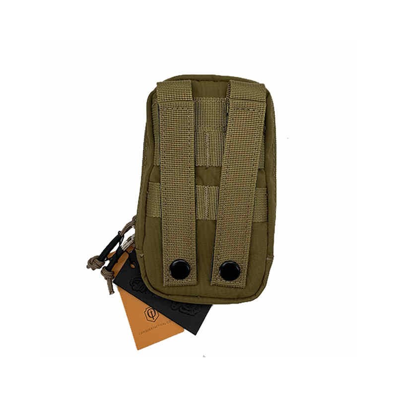 Pouch de mano donde se pueden almacenar diversas cosas del día a día: Llaves, móvil (no excesivamente grande), tarjetas, monedas, pequeñas navajas, etc. Cuenta con sistema de anclaje MOLLE para colocar en el chaleco o primera línea o simplemente en cinturón de uso diario y su ligero acolchado permite transportar las cosas del interior con un cierto grado de protección.