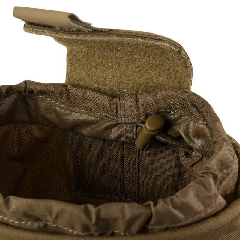 Cuenta con un bolsillo reforzado que se puede sujetar directamente a un cinturón, lo que permite desechar fácilmente los cargadores usados de rifle o pistola.