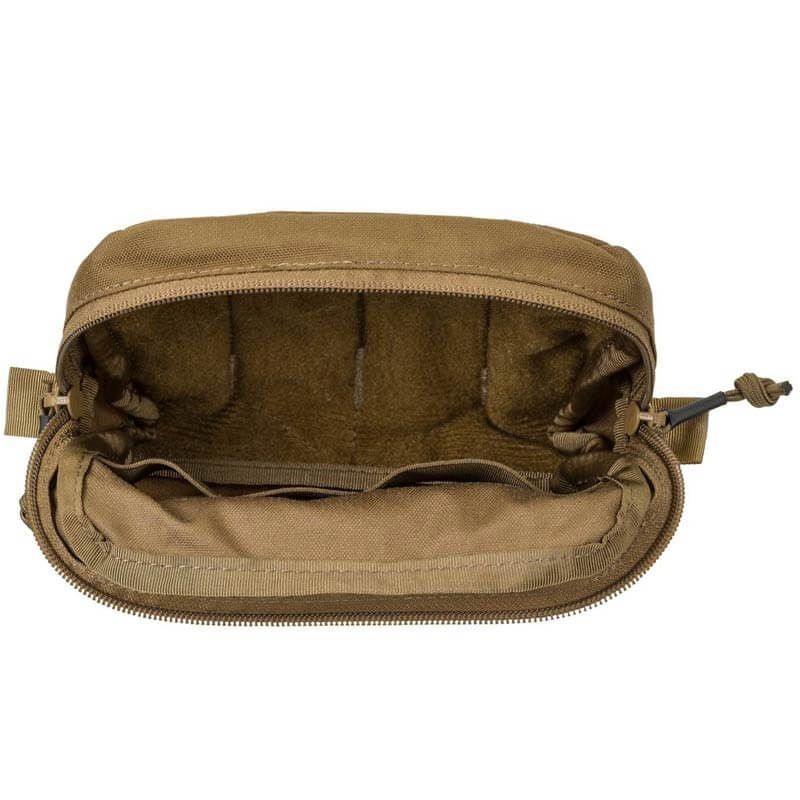 La bolsa consta de un compartimento principal grande con cremallera mejorado con un práctico organizador. En la parte delantera de la bolsa, hay un panel de velcro suave que permite una personalización rápida y sencilla. El modelo se puede montar en cinturones de hasta 50 mm de ancho y también está integrado con el sistema MOLLE/PALS.