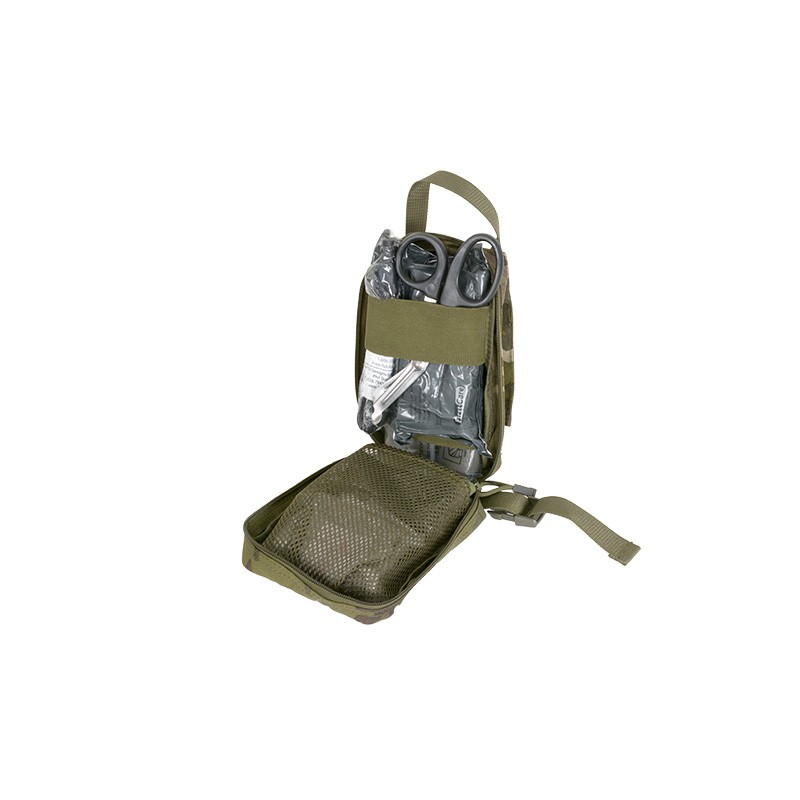 La bolsa MOLLE Medic es ideal para botiquines médicos básicos personales. Se mantiene seguro mediante 2 cremalleras para abrirse completamente y facilitar el acceso, 2 bucles Molle en la parte trasera. Tiras elásticas en el interior de la bolsa para guardar artículos médicos.