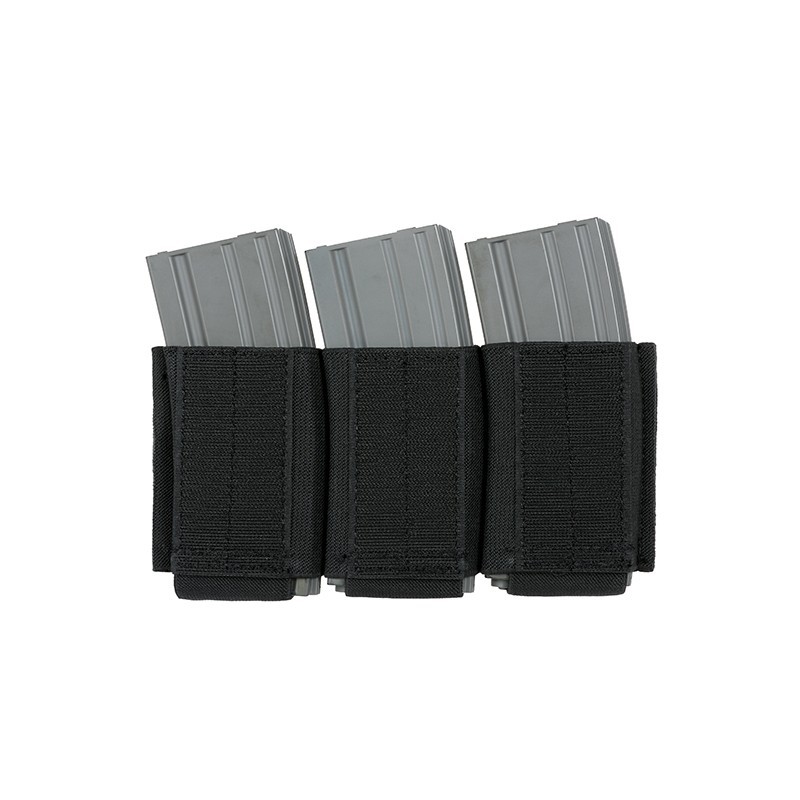 Insert elástico triple para cargadores de M4/5,56mm. Cuenta con velcro hembra por un lado y marcho por el otro y está indicado para su uso dentro de los cummerbund de la mayoría de los chalecos tipo JPC o similar cuyos cummerbund abrazan la parte delantera de la placa con velcro. Cuentan con velcro hembra por una cara y macho por su otra cara.