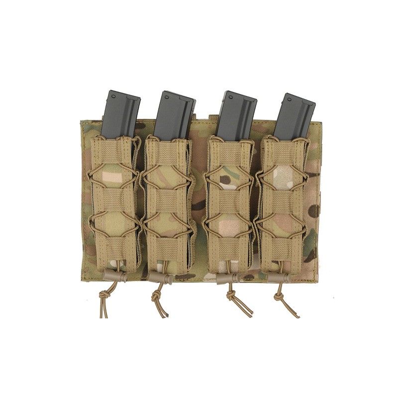 Pouch cuádruple para cargadores de MP5 o SMG (no cargadores de MP7 VFC). Con sistema MOLLE que permite su colocación en cualquier chaleco o pernera con este sistema.