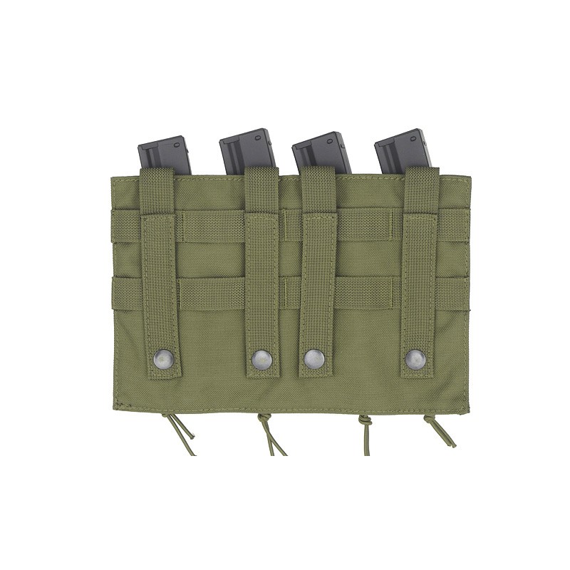 Fabricado en poliéster 1000D de alta calidad, caracterizado por una alta resistencia a los daños mecánicos y, gracias al acabado de PU, resistencia a la nieve y al agua. El diseño de bolsillo abierto nos da la opción de una recarga súper rápida, así como una reinserción de los cargadores gastados.