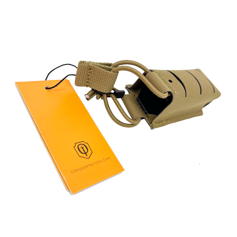 Gracias a su sistema de fijación con correas ajustables, el pouch LP de Conquer se puede integrar fácilmente en chalecos tácticos, cinturones o sistemas de transporte, ofreciendo un acceso rápido y cómodo al cargador sin ocupar espacio innecesario. Su diseño compacto y funcional también ayuda a mantener el equipo organizado y accesible durante las actividades.