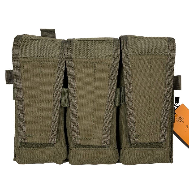 Compartimentos triples aptos para cargadores de rifle, cada uno con seguridad adecuada para evitar que se salga involuntariamente.