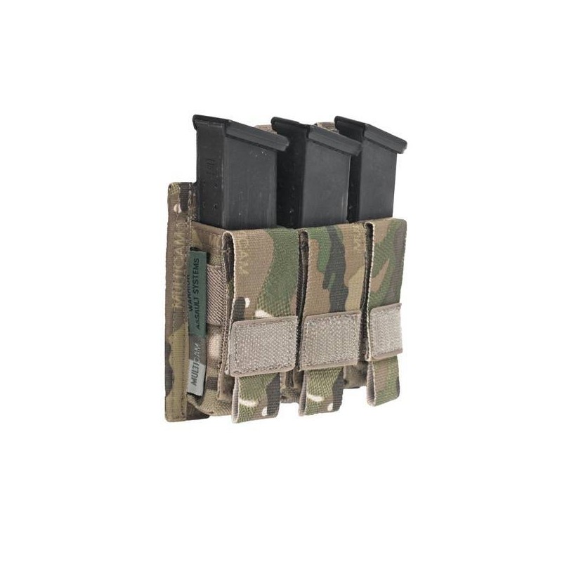 Este pouch para cargadores de acción directa de 9 mm es compacta y permite enrollar la solapa de la cubierta hacia abajo y asegurarla con fijación de velcro para permitir un acceso rápido a los cargadores. El Triple 5,56 mm abierto ocupa 3 filas horizontales de MOLLE en plataformas y bolsas de transporte compatibles.