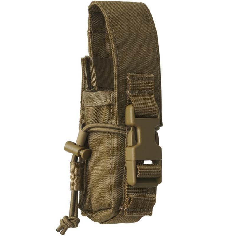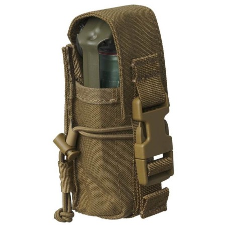 La bolsa para granadas aturdidoras es una bolsa con estructura de caja diseñada para llevar una sola granada aturdidora o artículos de tamaño similar. Tiene capacidad para la mayoría de las granadas aturdidoras NICO o P1A6 estándar, ya sea con o sin peso adicional. El pouch cuenta con una solapa con una hebilla para un acceso rápido y silencioso a la granada almacenada. La altura de la solapa se puede ajustar mediante cierres de velcro, lo que permite adaptarla a varios tipos de granadas. La solapa también se puede quitar para usarla abierta, asegurándola con un cordón elástico. La bolsa se fija al equipo a través de un sistema modular compatible con MOLLE/PALS.
