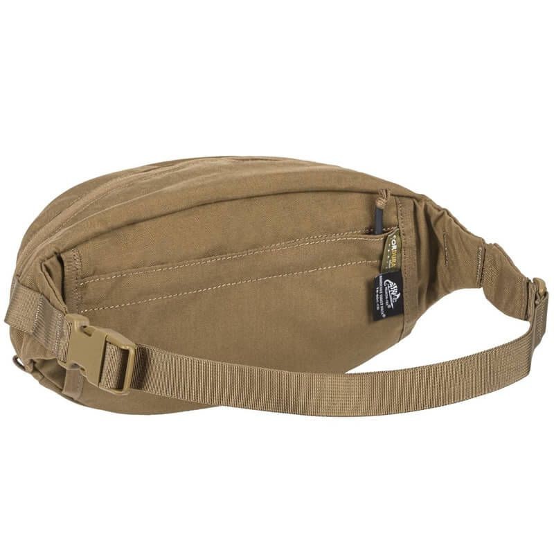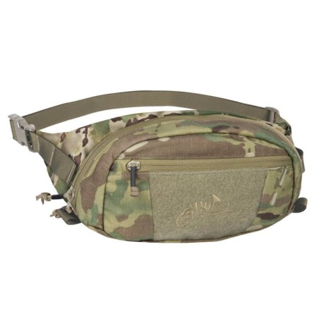 Una cremallera de doble dirección proporciona acceso al compartimento principal desde ambos lados. Dos bolsillos externos tienen cremallera, lo que permite el almacenamiento seguro de varios artículos. La riñonera se puede integrar con otros elementos del sistema MOLLE/PALS gracias a varias correas con bucles.