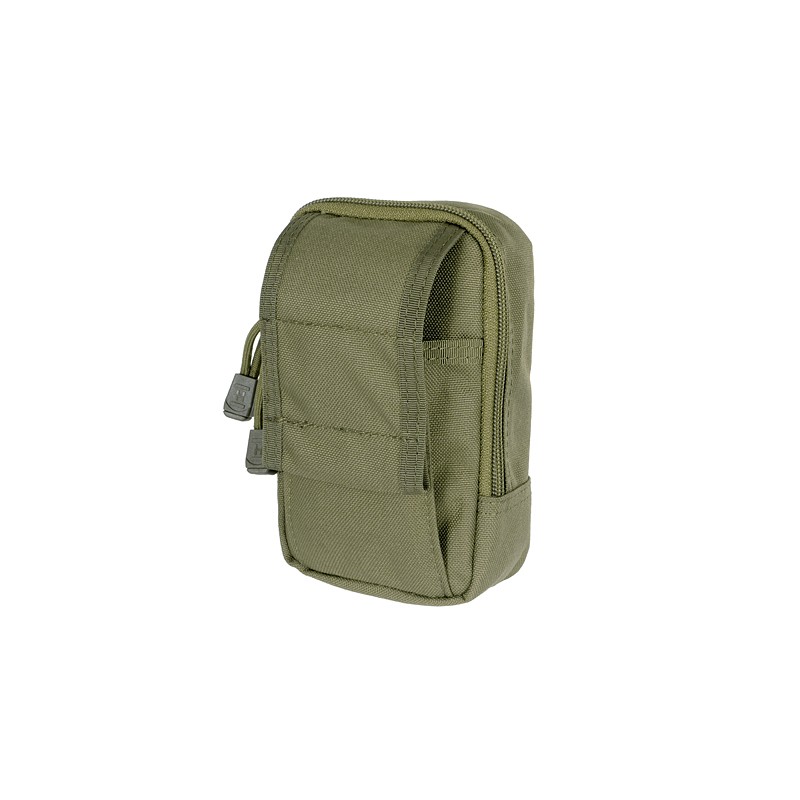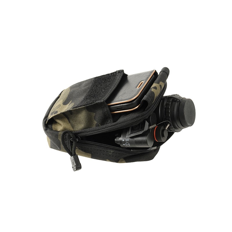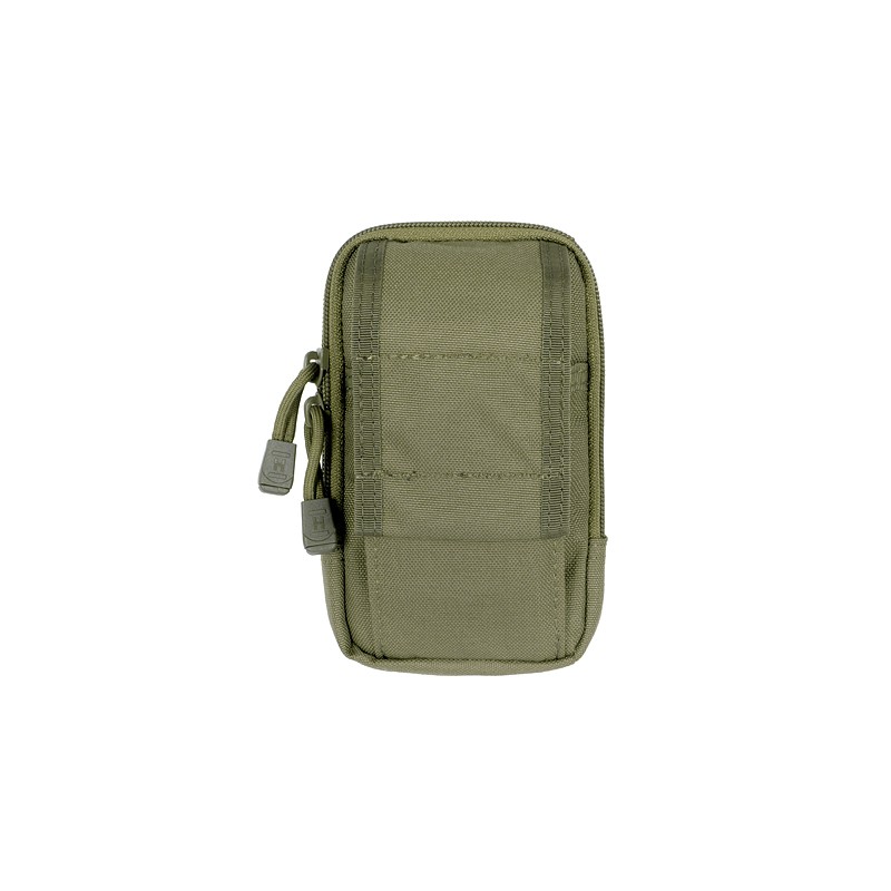 Bolsa multiusos de fácil acceso con bolsillo para teléfono móvil o radio y compartimento principal con cremallera para organizar otro equipo. Compatible con sistema MOLLE/PALS.