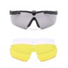 Tres lentes intercambiables de policarbonato: una ahumada para días soleados, una amarilla para entornos con poca luz o que requieran mayor contraste, y una transparente para uso general.