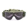 Montura cerrada o estilo “envolvente/ventila” que ofrece cobertura integral alrededor de los ojos, ayudando a proteger frente a impactos o rebotes —especialmente útil en airsoft o entornos con partículas.
