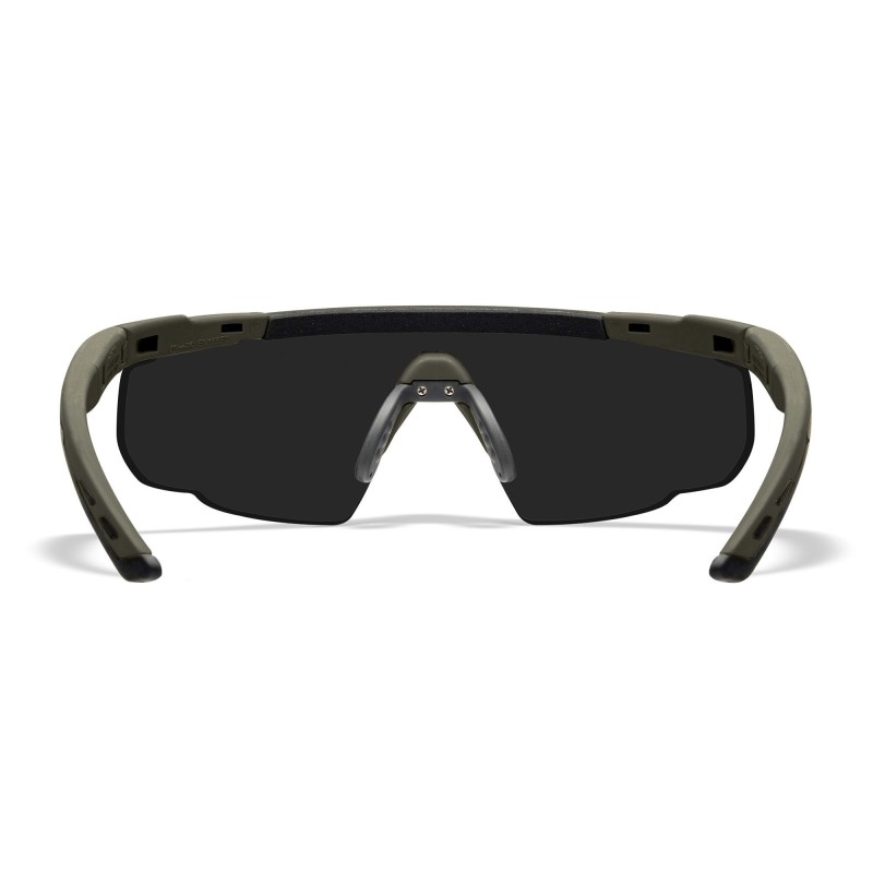 Saber Avanced incluye una tira de espuma para las cejas que mantiene el sudor y la suciedad fuera de los ojos, montura irrompible de color negro mate y un robusto diseño que no sólo ofrece resistencia al impacto balístico en el campo de batalla, sino también protección 100% frente a los rayos UVA y UVB sin distorsión óptica.