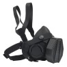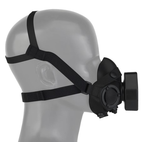 La máscara cuenta con un filtro de atrezzo desmontable que está relleno de filtro adsorbente y con válvulas de no retorno en sus laterales. Cuenta demás con 2 tipos de anclaje: 1 para su uso directo sobre la cabeza y otro pensado para engancharlo a los clips del casco (tener en cuenta la compatibilidad) y que permite su uso de forma muy cómoda durante muchas horas.