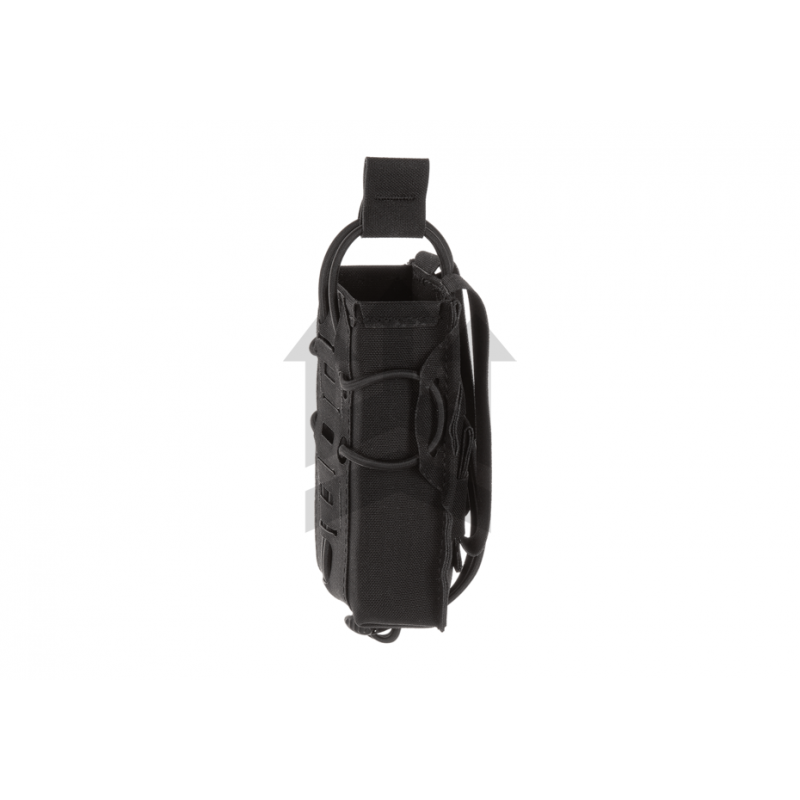 Funda con retención elástica de liberación rápida, equipado con paneles molle, cortados con láser en su parte frontal y 2 tiras de anclaje molle en su parte trasera.