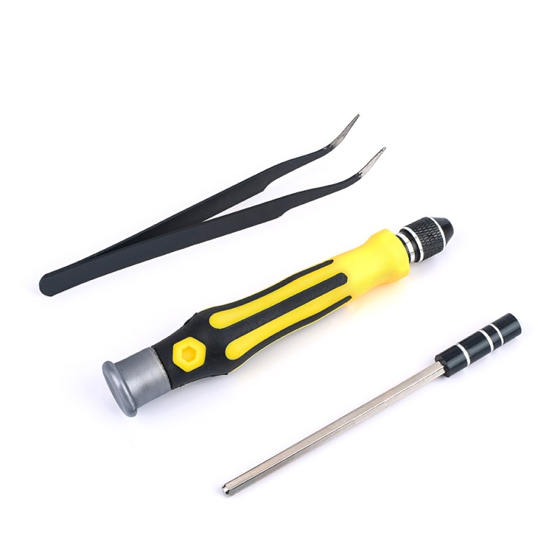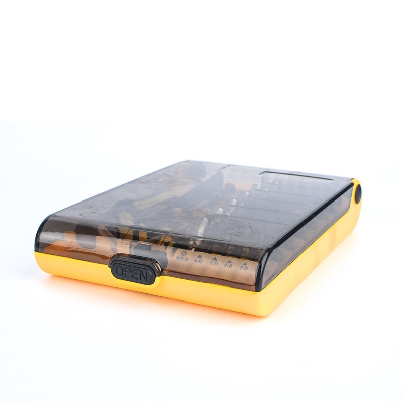 Kit de herramientas super portátil! Compuesto por 45 piezas es un accesorio perfecto para llevar a nuestras partidas de Airsoft o Milsim ya que seguramente nos termine sacando más de una puro. Entre las 45 piezas se incluye el mango principal con cabeza fija donde se pueden acoplar las diferentes puntas, pinzas de punta fina curvadas y un acople alargador y flexible que nos permitirá llegar a las zonas más complicadas.
