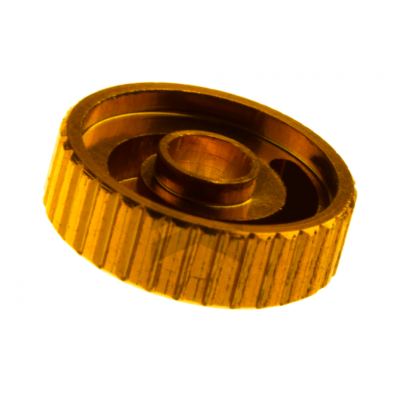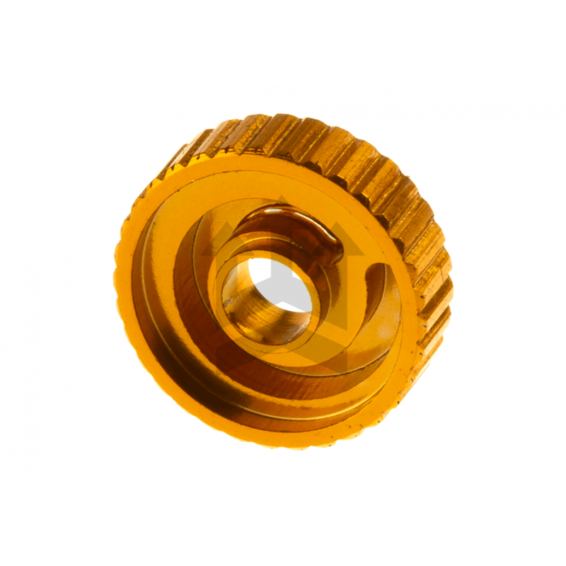 Rueda de ajuste para la cámara de Hop up. Perfectamente mecanizada en forma externa y surco guía interno esta rueda de nos permitirá un ajuste milimétrico del hop up para un disparo tenso y preciso.
