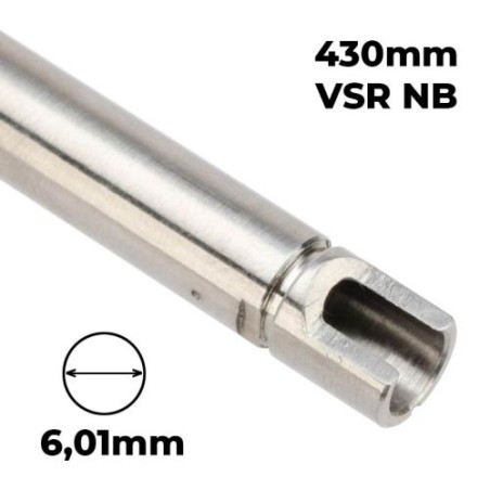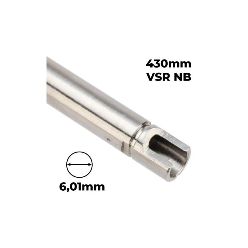 Se trata de un cañón interno de alta precisión fabricado por Lambda, diseñado para réplicas tipo VSR-10 (como las de Tokyo Marui). Con un diámetro interno muy ajustado de 6,01 mm y una longitud de 430 mm, este tubo optimiza la agrupación y la estabilidad de los disparos. Está especialmente pensado para mejorar la consistencia y el rendimiento en configuraciones de francotirador, al ofrecer un acabado interno pulido y tolerancias mínimas. Su versión NB (“no bridge”) incluye un corte en el puente de la ventana con un ángulo de 45°, lo que facilita su montaje en ciertas cámaras de hop-up y mejora la transición de la bola.