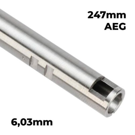 El interno Lambda One 6,03 mm / 247 mm está diseñado para usuarios de AEG que buscan maximizar la precisión y la consistencia de sus disparos. Gracias a su estrecho diámetro, tolerancia micrométrica y producción japonesa de alta gama, aporta un salto de calidad en términos de estabilidad y agrupación respecto a los cañones estándar.
