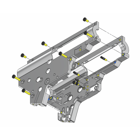 El CNC Gearbox V2 (8mm) de RetroArms es una carcasa de gearbox de alta gama diseñada específicamente para réplicas de Airsoft compatibles con el estándar Tokyo Marui (no recoil), como las series AR15 (M4), M16 y MP5. Fabricada a partir de un bloque sólido de aluminio aeronáutico EN AW 7075 T651 (duraluminio), ofrece una resistencia a la tracción de 590 MPa, superior al acero estructural común (390 MPa), lo que garantiza una durabilidad y rigidez excepcionales.