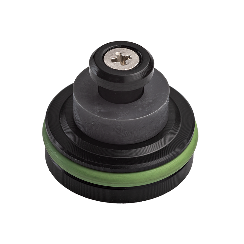 La particular conformación de la parte de golpe (cónica degradada hacia el centro con diferentes ángulos) asegura que los orificios de ventilación nunca sean cerrados por la goma de la culata, sin dejar sin embargo demasiado aire entre la culata y la culata del pistón. Todo esto asegura un perfecto sistema anti-vacío sin producir nunca pérdidas de potencia.