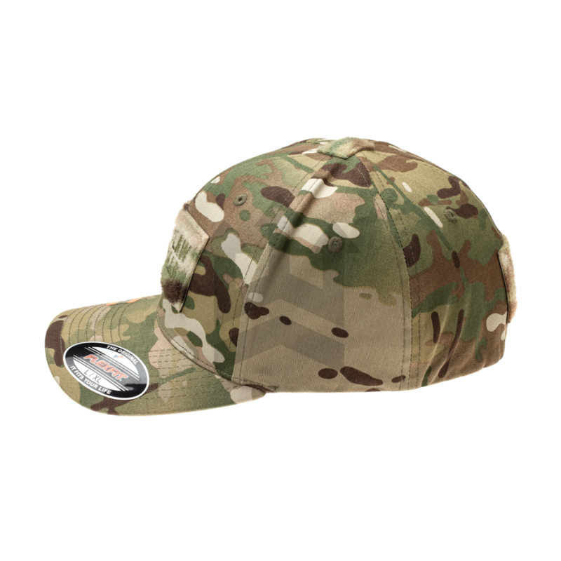 Esta gorra Flexfit duradera presenta una forma atlética y ruda. En camuflaje multicam (inclusive el velcro) y con la visera ligeramente curvada.