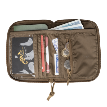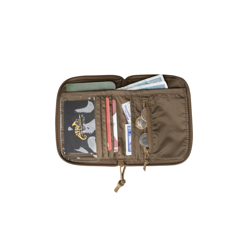 Cartera segura y resistente. La Cartera EDC Grande es una de nuestras carteras más grandes. Guarda fácilmente lo más necesario: tarjetas de crédito, documentos, multas de aparcamiento y dinero. Sus compartimentos la convierten en una cartera táctica para el día a día. También incluye espacio para una foto o una nota con la información esencial (por ejemplo, una tarjeta de grupo sanguíneo). El cierre de cremallera protege el contenido.