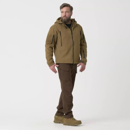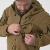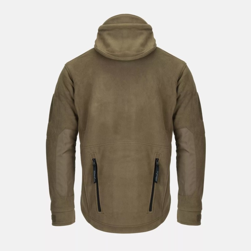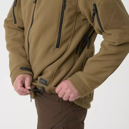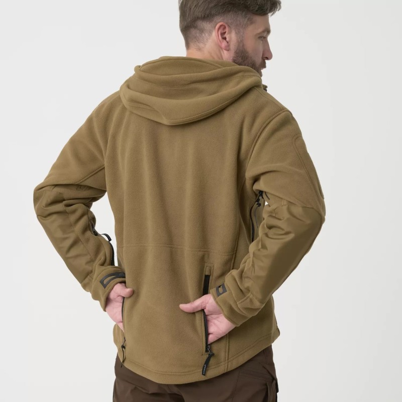 Este polar táctico cuenta con una capucha amplia y ajustable que protege la cabeza y el rostro de la lluvia y el viento, y seis bolsillos funcionales que ofrecen amplio espacio para guardar y acceder al equipo esencial. Incluye dos bolsillos en el pecho con salida para cables, dos a la altura del hombro, uno en el antebrazo izquierdo y un amplio bolsillo trasero tipo "pocker", accesible desde ambos lados.