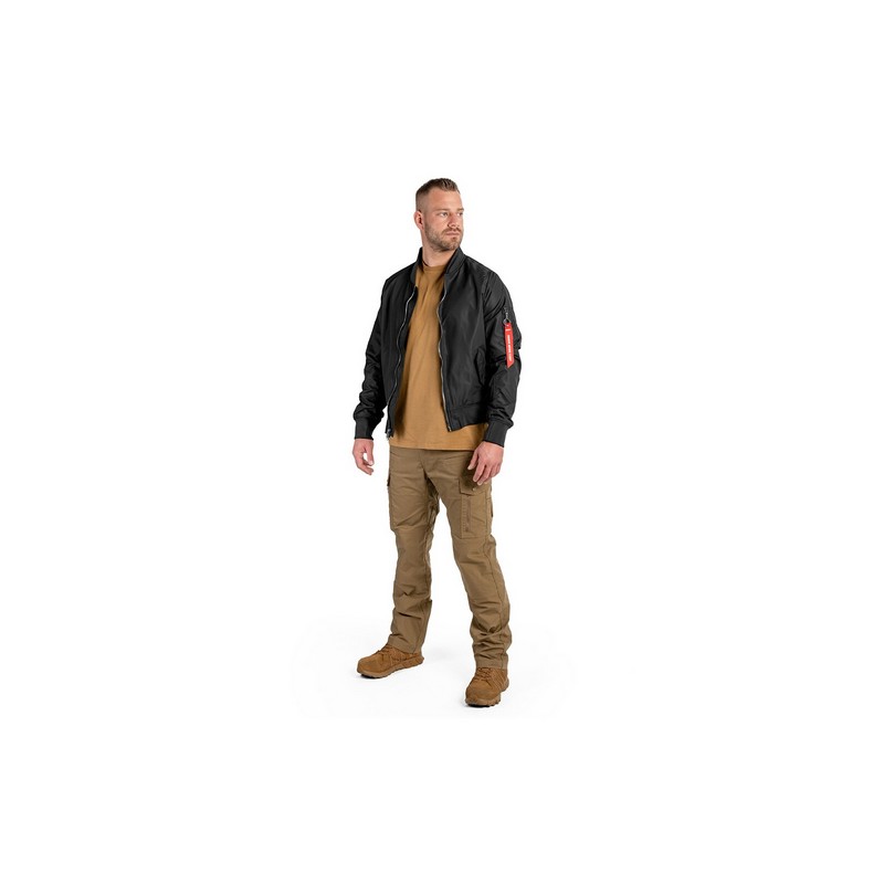 Una chaqueta ligera que se asemeja a las populares MA-1 Flyers. Confeccionado con una mezcla de materiales sintéticos duraderos y cerrado con una cremallera sólida. Los puños elásticos cosidos en las mangas, el cuello y las caderas evitan que se suba. Perfecto para uso diario en estaciones cálidas.