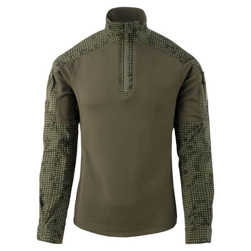 En los hombros se encuentran prácticos bolsillos con cremallera YKK que permiten guardar de forma segura objetos pequeños como dispositivos GPS o mapas. Los paneles dobles de velcro en los hombros permiten personalizar fácilmente la camiseta añadiendo emblemas o parches, como una bandera nacional o insignias de unidad. Un cuello alto con cremallera proporciona protección adicional y los puños ajustables con velcro permiten un ajuste perfecto. Además, los refuerzos alrededor de los codos ofrecen protección contra la abrasión.